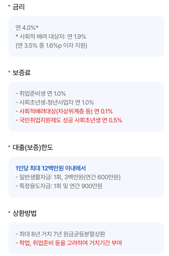 정부의 보증이 들어가 있어, 신용점수가 낮은 청년층도 상대적으로 낮은 금리로 금융 지원을 받을 수 있습니다.