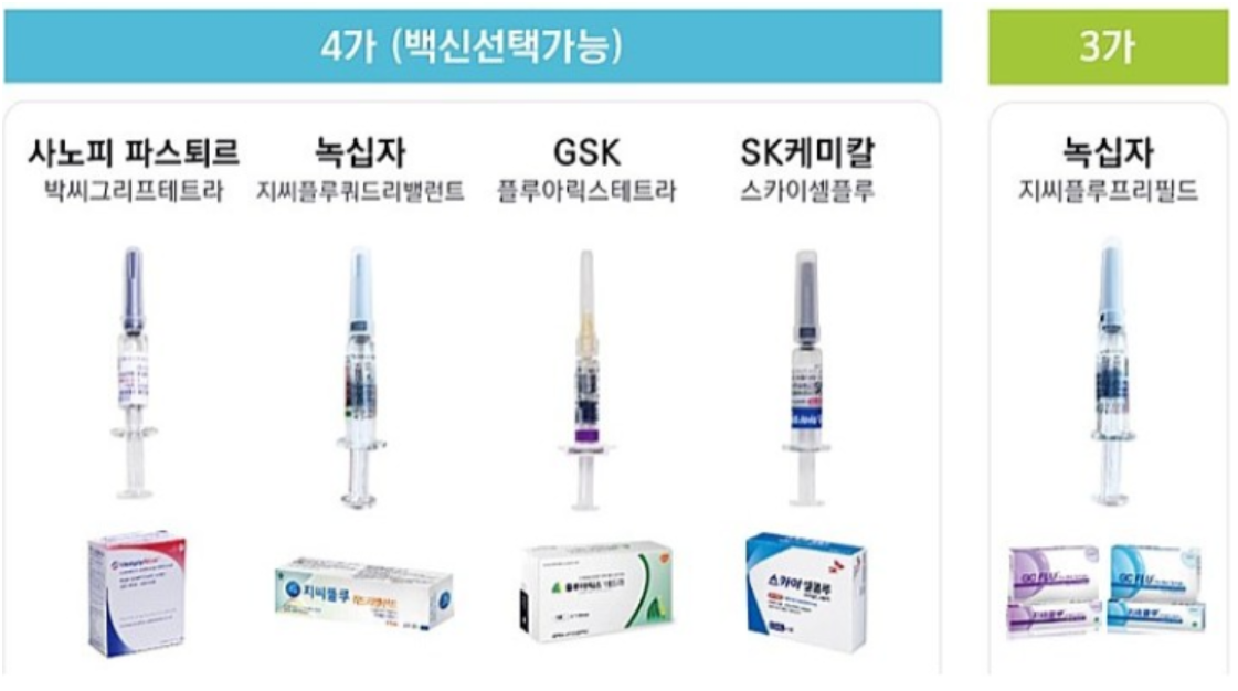 | 제조사 | GC녹십자, SK바이오사이언스 | 사노피 파스퇴르, GSK 등 |