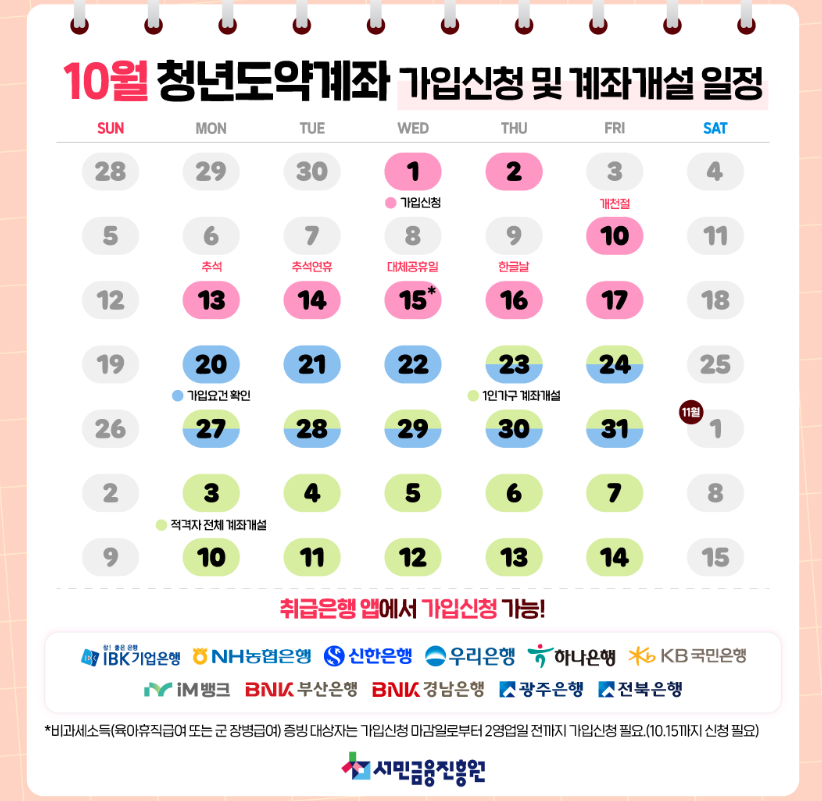4. 신청 마감 전에 꼭 접수 완료해야 해요.(청년도약계좌의 경우 2025년 12월까지만 접수)
